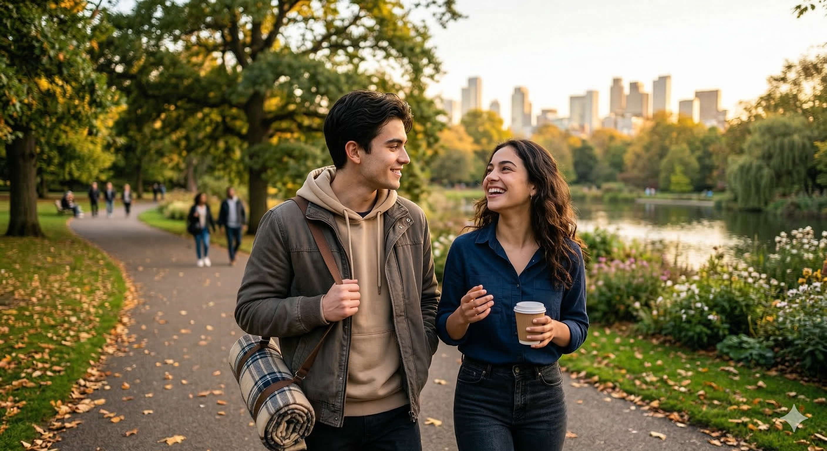 Maya: Our first real date was in the city park, I wanted to see him outside of that crowded cafe. We walked for miles—past the duck ponds, through the rose gardens, and into the deep wooded trails where the city noise just disappears. Mateo: I remember how the light hit the trees. It was one of those perfect spring days where everything is impossibly green. We didn't even realize we’d been walking for four hours until the sun started to dip. Maya: We talked about everything. No small talk. It felt like we’d known each other for years by the time we reached the park gates.